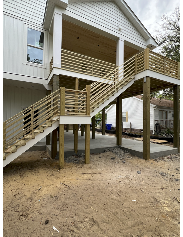 Choose from high-quality materials including pressure-treated wood, composite decking, Trex®, or luxury cedar — all built to suit your style and budget. Every deck comes complete with custom-built handrails tailored to match your vision and bring the whole look together.